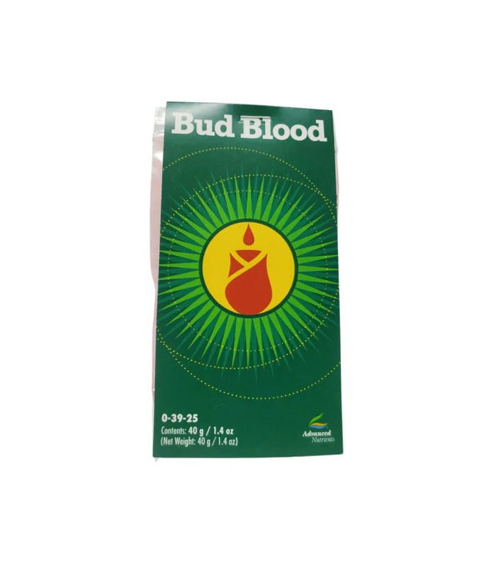 Bloom stimulatoren Bud Blood inneholder det perfekte forholdet mellom kalium, fosfor, svovel og andre viktige blomstringsfremmende ingredienser for å danne sterke og tunge blomster på den mest effektive måten.